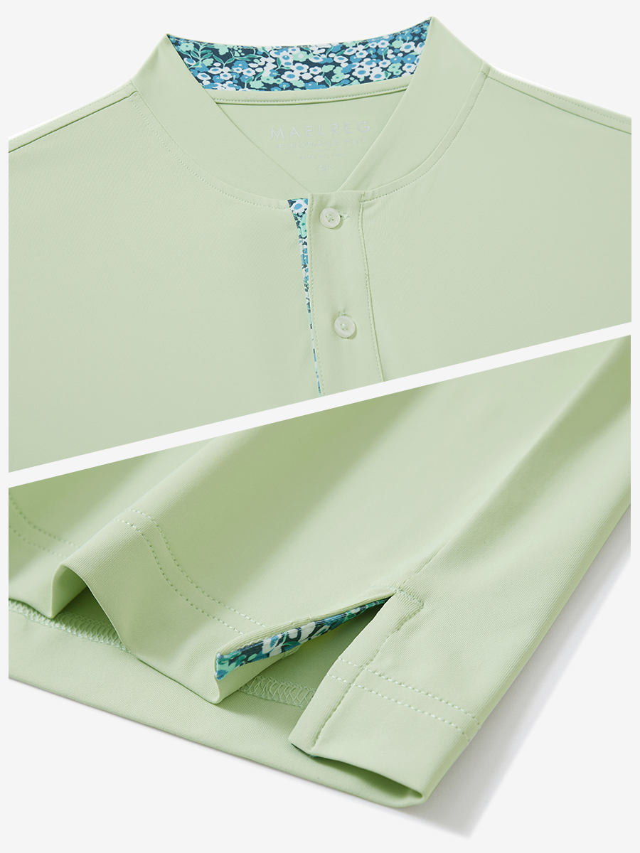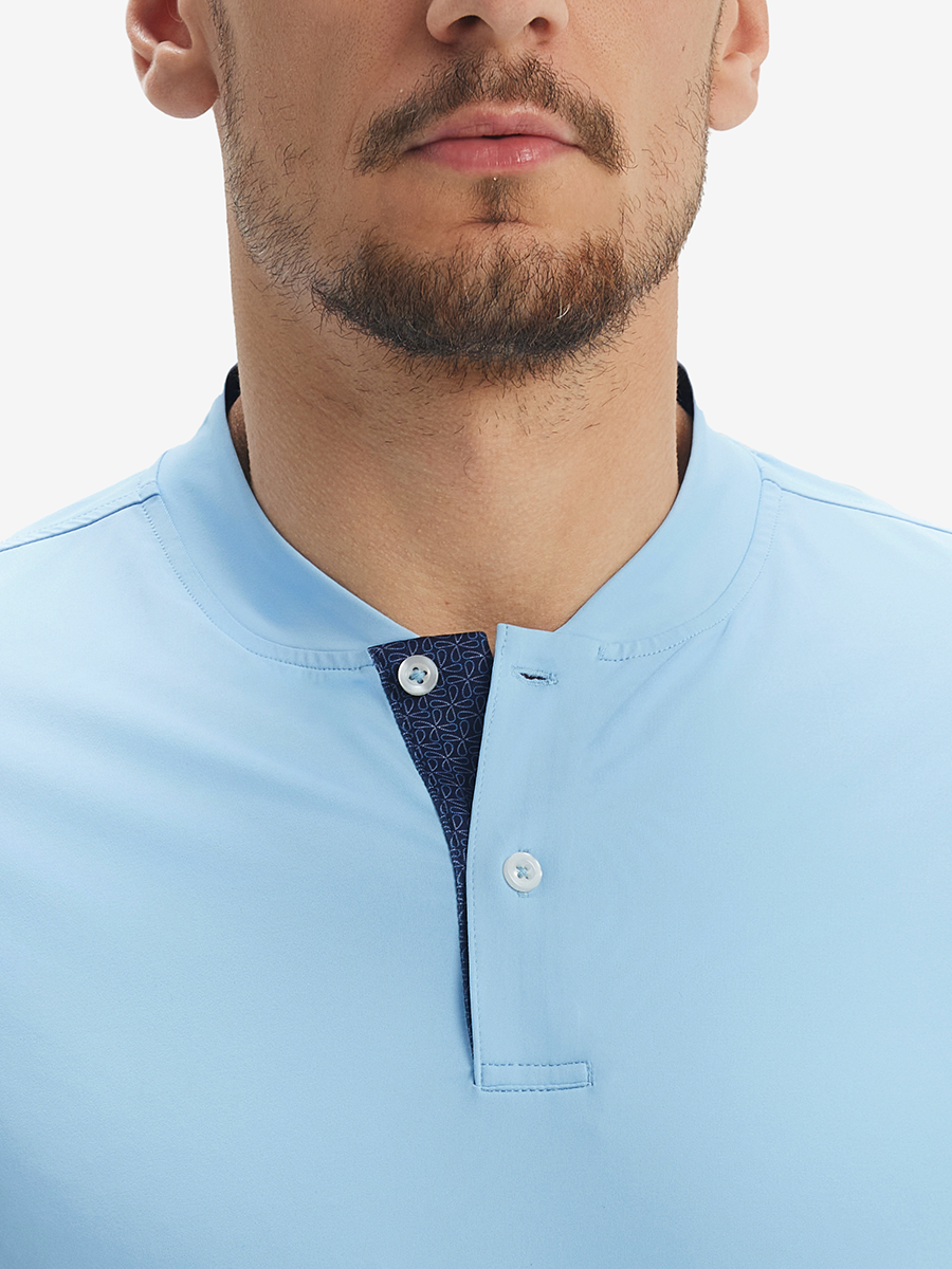 Upgrade your wardrobe with the Moisture-Wicking Short Sleeve Henley Shirt—engineered for golfers but perfect for any occasion. Featuring moisture-wicking, quick-dry tech, UPF 50+ sun protection, and 4-way stretch, it’s lightweight, breathable, and ultra-soft for all-day comfort. A collarless cut boosts mobility while contrast prints inside the placket and neckline add refined style. Ideal for sports, work, or gifting!