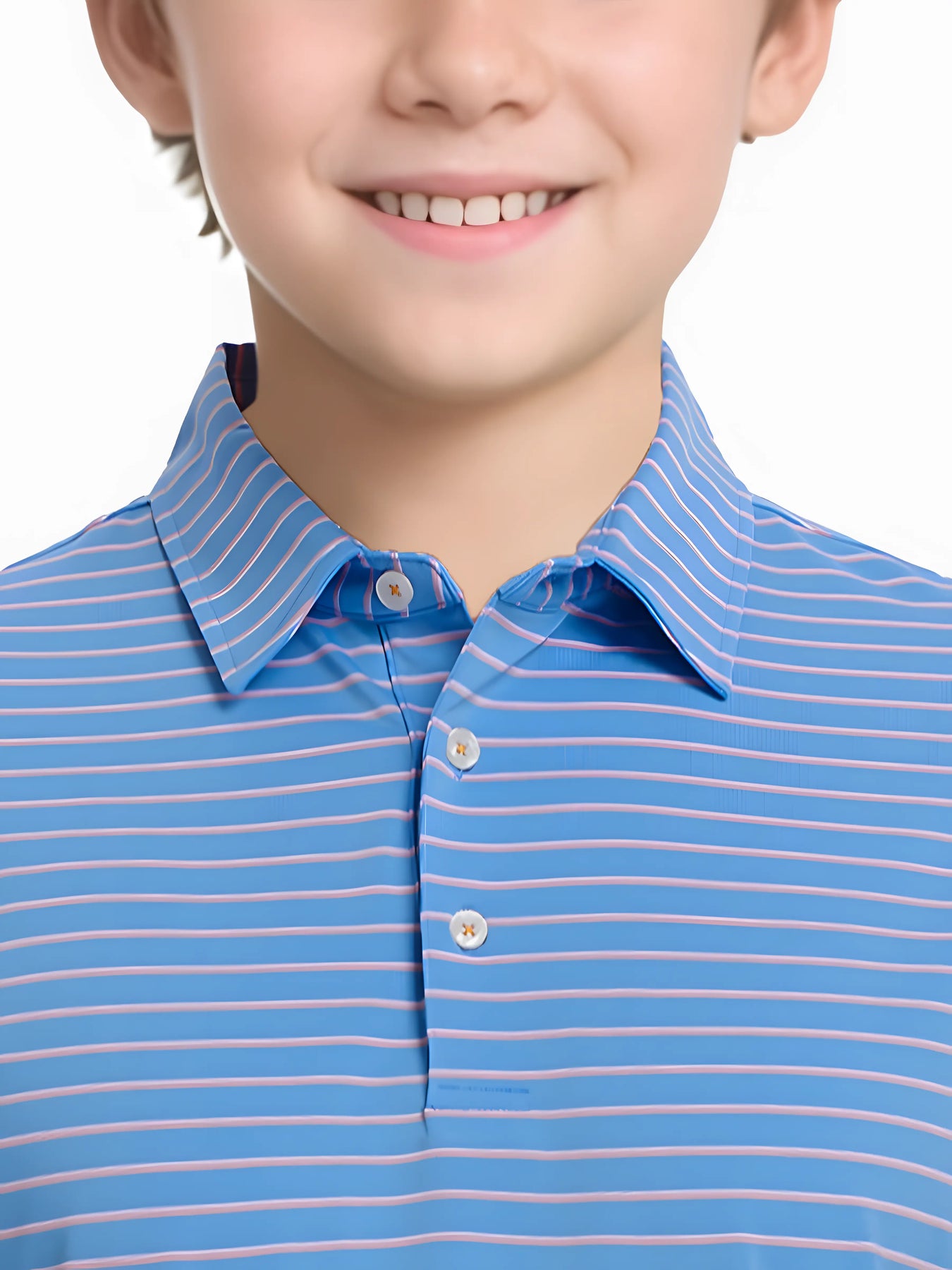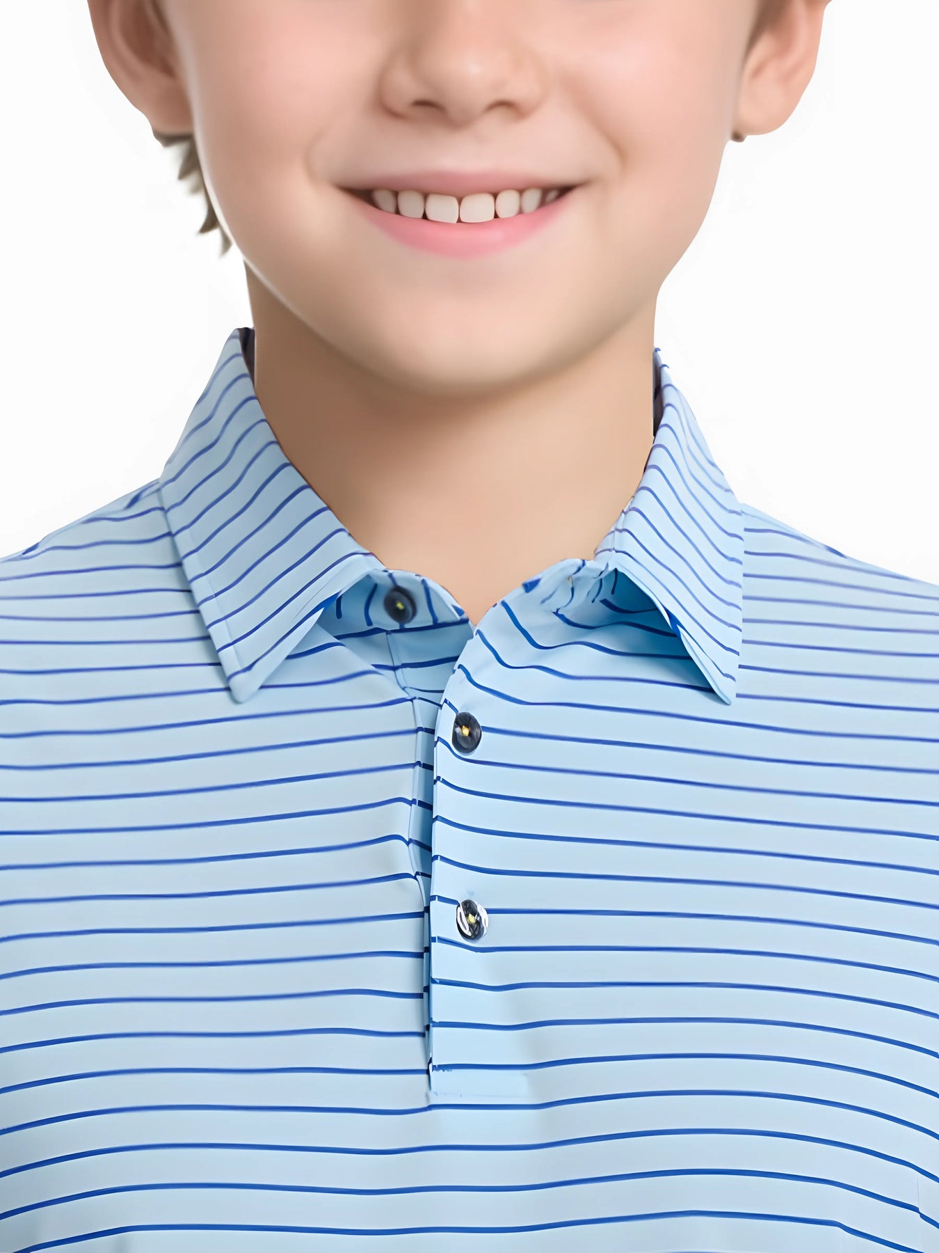 Discover the versatility of our Youth Performance Golf Polos. Style meets functionality in these boys' golf shirts featuring a no-roll collar, tag-free design, and durable stitching. Easy to care for, they maintain softness and shape wash after wash. Stay comfortable all day with quick-dry, moisture-wicking, stretch, and breathable fabric.