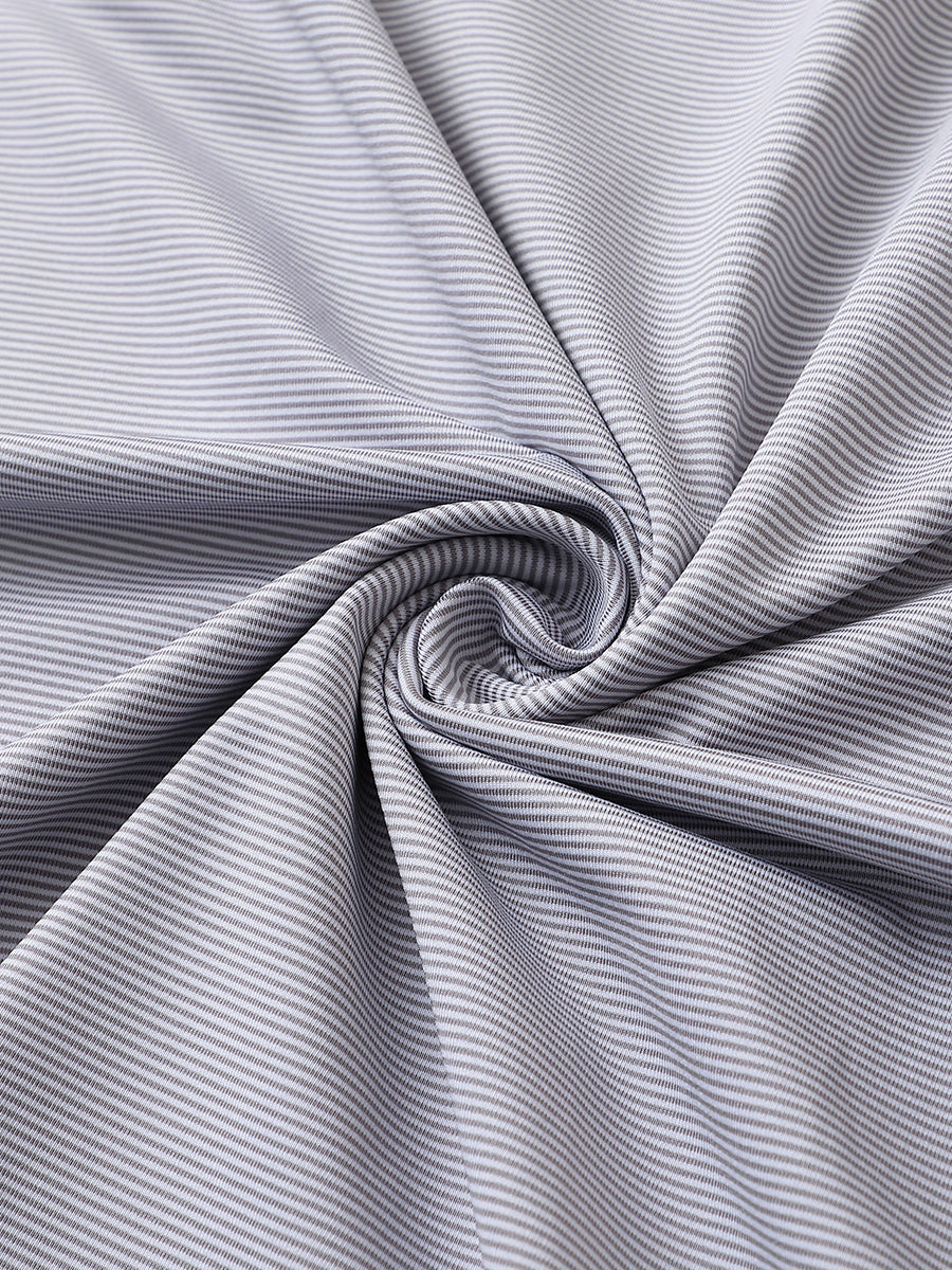 Meet our Pinstripe Jersey Performance Polo, a blend of comfort and performance. Lightweight, soft, and equipped with UPF 50+, moisture-wicking, quick-drying, and 4-way stretch features for ultimate comfort and coolness. This golf shirt excels in performance and durability. Resistant to fading, pilling, and shrinkage, it ensures that your stylish polo maintains its quality and appearance, even after repeated wear and washing.
