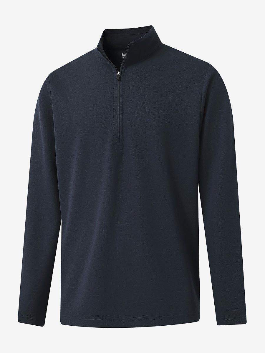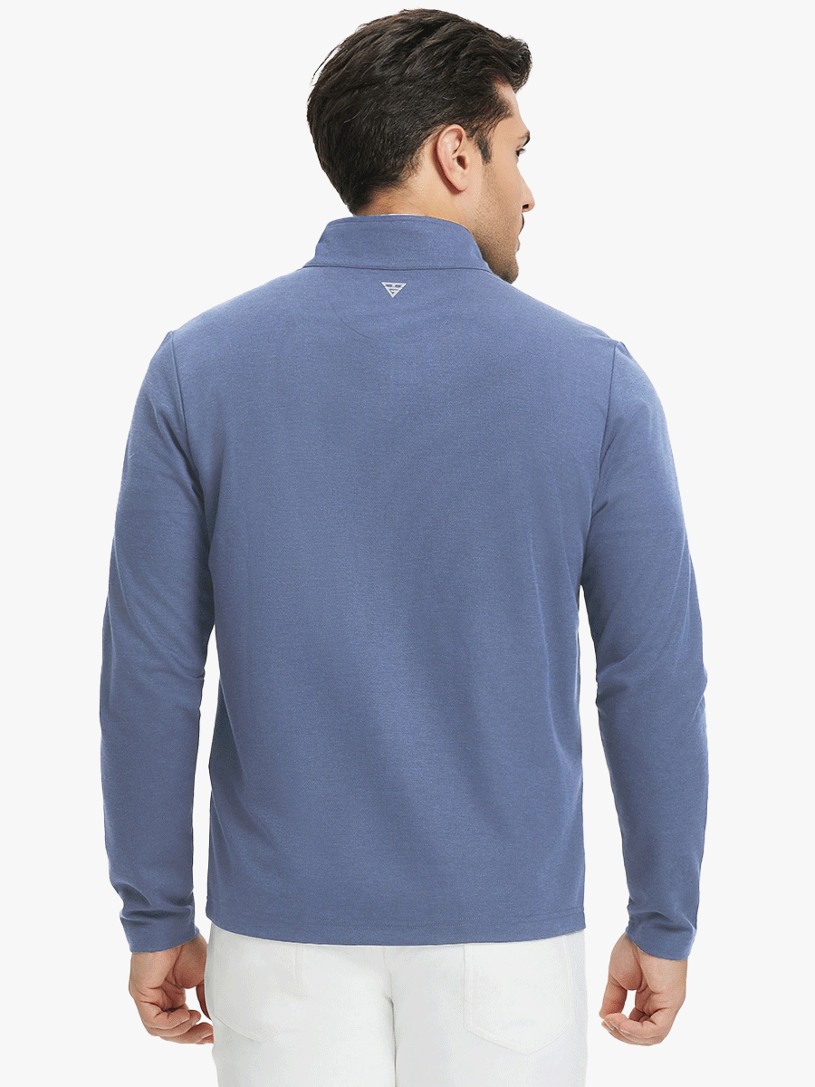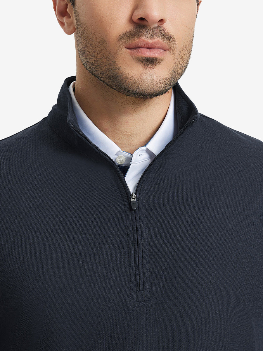Experience ultimate comfort and style with our Premium Jacquard Quarter Zip Pullover. Crafted from performance herringbone fabric, it offers dry fit technology and UPF 50+ protection. This men's sweatshirt is ideal for staying warm in cold weather and perfect for layering in autumn and winter. The elaborately developed fabric ensures wear-resistance and durability, while maintaining a slight stretch for ease of movement. With meticulous stitching and exquisite details, this pullover is a perfect blend of quality and functionality.