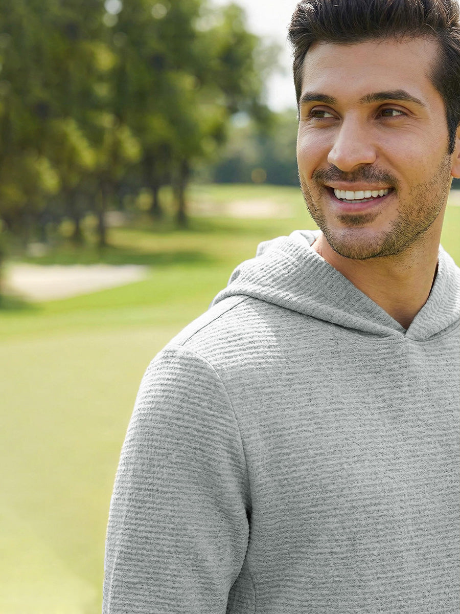 Stay dry and comfortable in our Texture Solid Hoodies Pullover for men. This sweatshirt offers superior moisture-wicking properties and features a lightweight, breathable design for optimal airflow, perfect for both sports and casual wear. Experience unrestricted movement with 4-way stretch and a textured finish. The flatlock seams reduce chafing, while the fabric maintains its shape and color wash after wash.