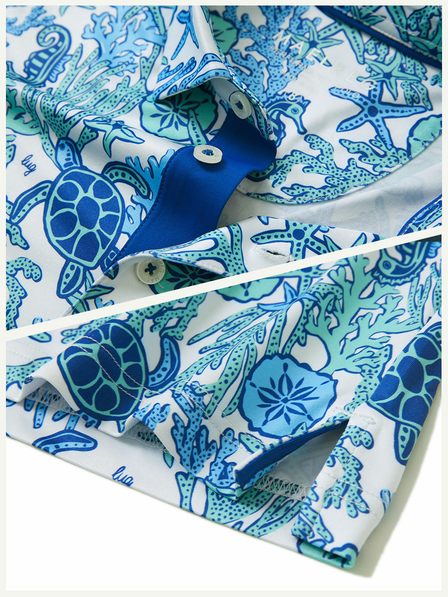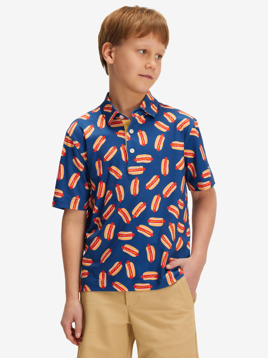 Prepara a tu pequeño golfista para la aventura con nuestro Polo de golf estampado de rendimiento para niños. Confeccionado con tela de primera calidad que absorbe la humedad, se mantiene ligera y protege con UPF 50+. Déjalo balancearse libremente con el dobladillo dividido y la tela elástica. ¡Míralo lucirse en el campo con divertidos estampados de animales y plantas que nunca se desvanecen, convirtiéndolo en el golfista más adorable!