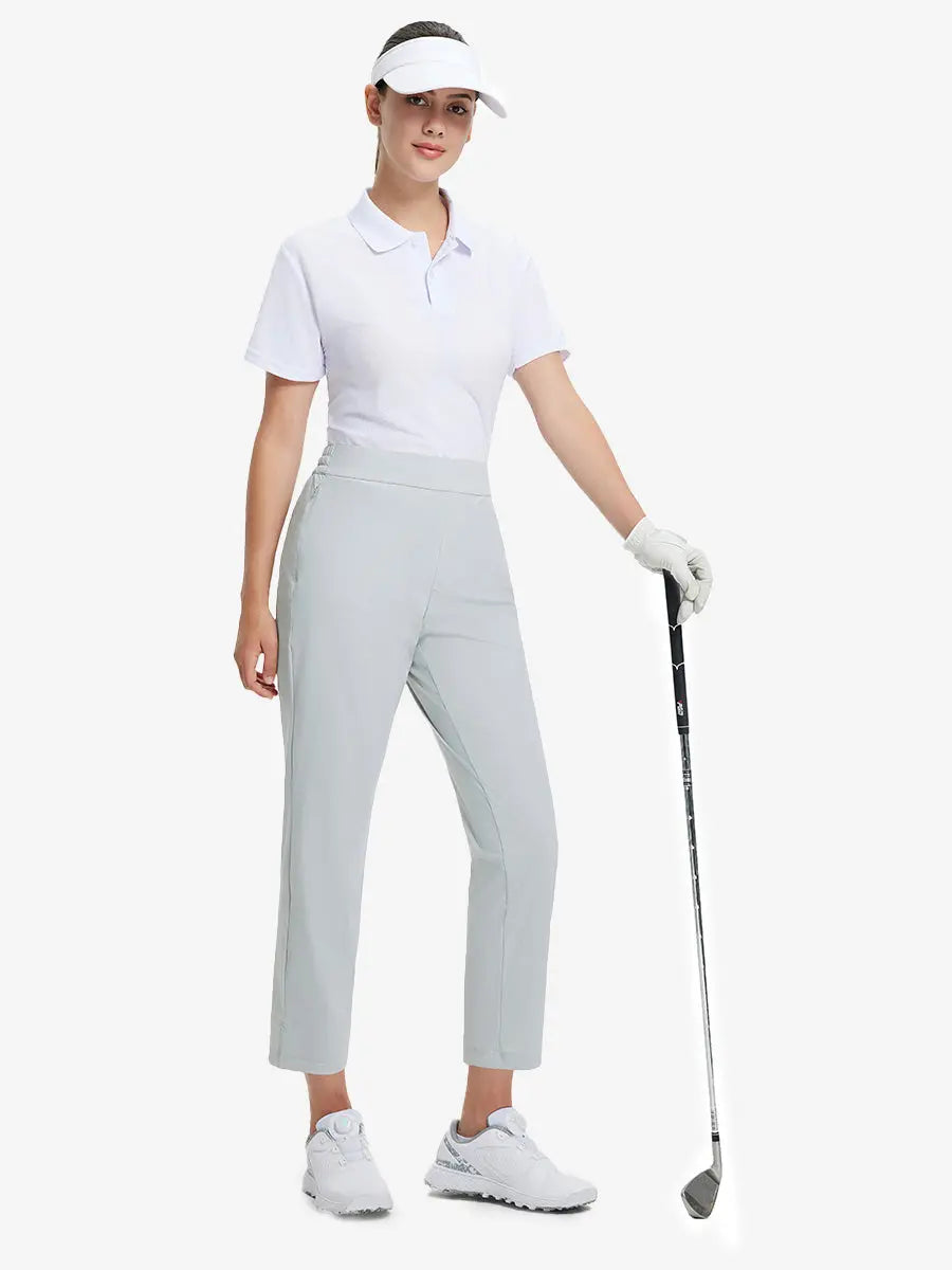 Mantente fresca y cómoda todo el día con nuestros pantalones de chándal de golf de 7/8 para mujer. Con elasticidad en 4 direcciones, secado rápido, UPF 50+ y propiedades que absorben la humedad, estos pantalones ofrecen un ajuste perfecto con una cintura elástica y un cordón ajustable. Disfruta de una cobertura total y libertad de movimiento con estos versátiles pantalones deportivos.