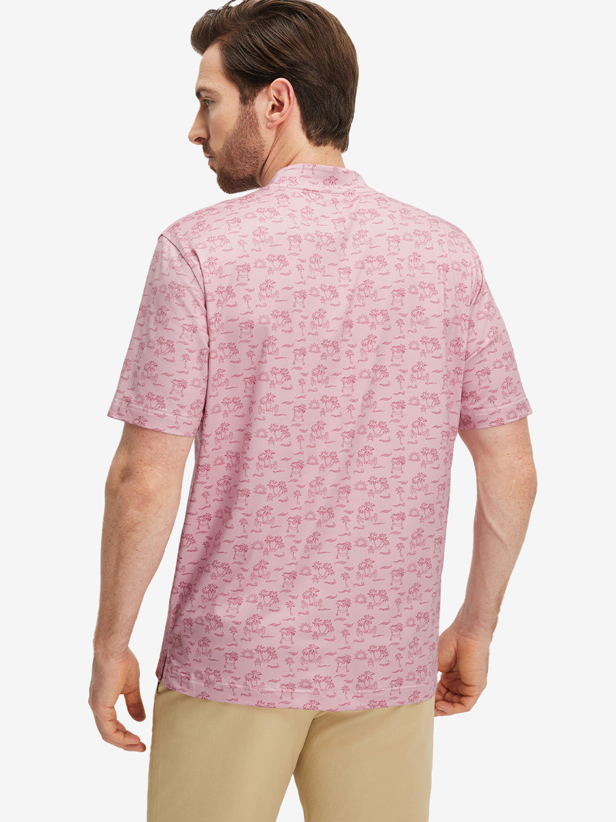 Stretch Printed Collarless Henley Golf Shirts