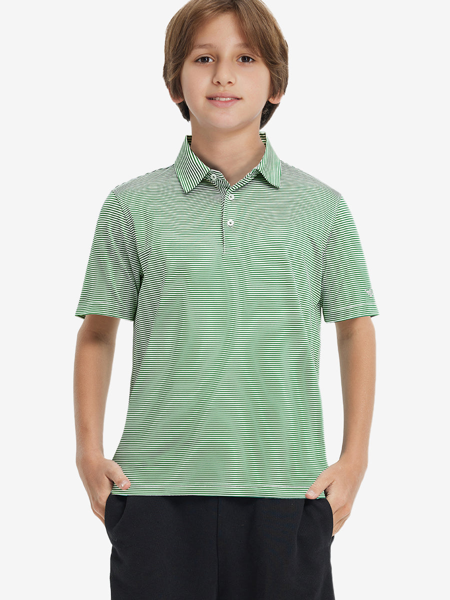 Performance Cooling Polo - Youth crafted from polyester spandex striped jersey. Lightweight, moisture-wicking, quick-drying, UPF 50+, soft hand-feel, 4-way stretch for comfort and breathability. Special construction ensures a no-curl collar and maintains shape.