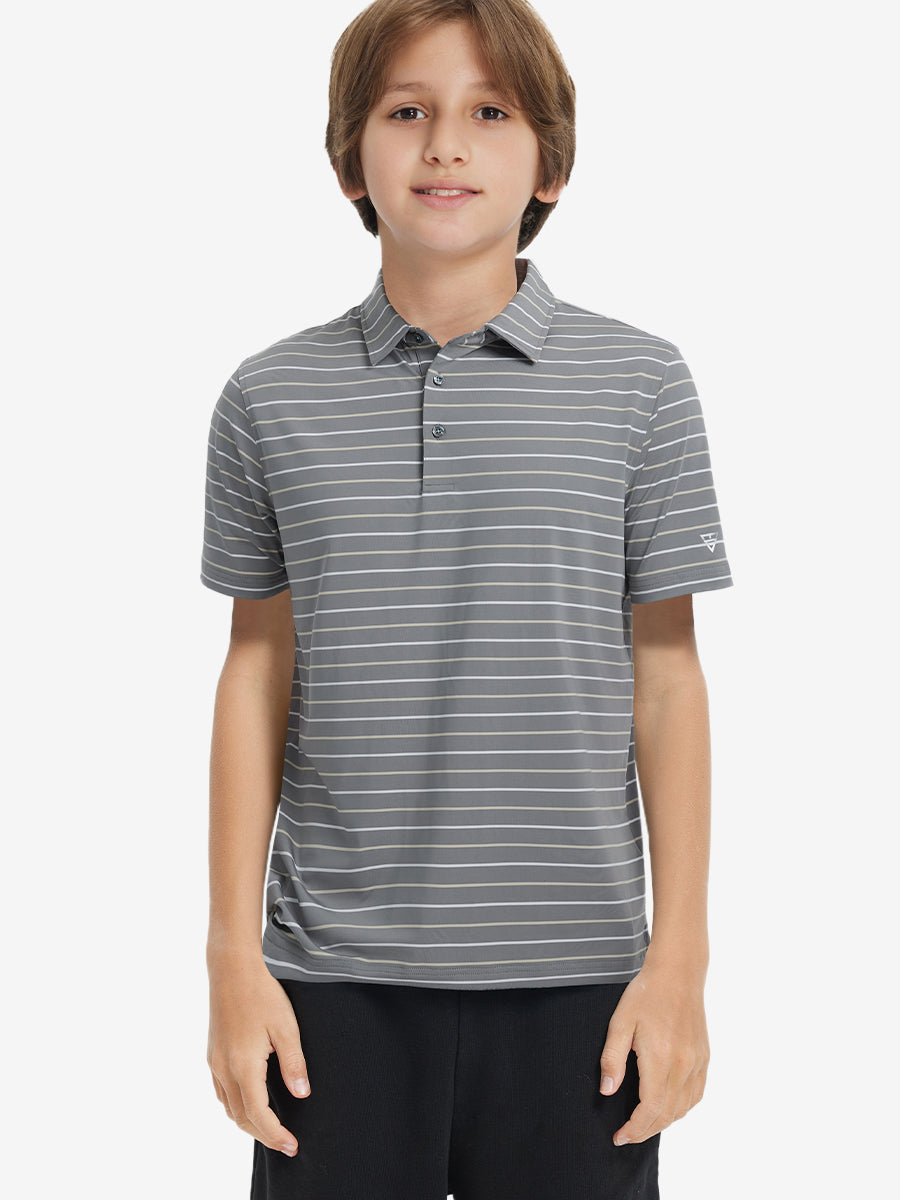 Introducing our Kids Stylish Stripe Polo Shirts! Made from high-end polyester spandex, these soft, skin-friendly, and lightweight shirts keep your little ones cool and dry in hot weather. With 4-way stretch fabric and premium dyeing, this vibrant youth golf shirt remains durable wash after wash, perfect for active kids who love to play.