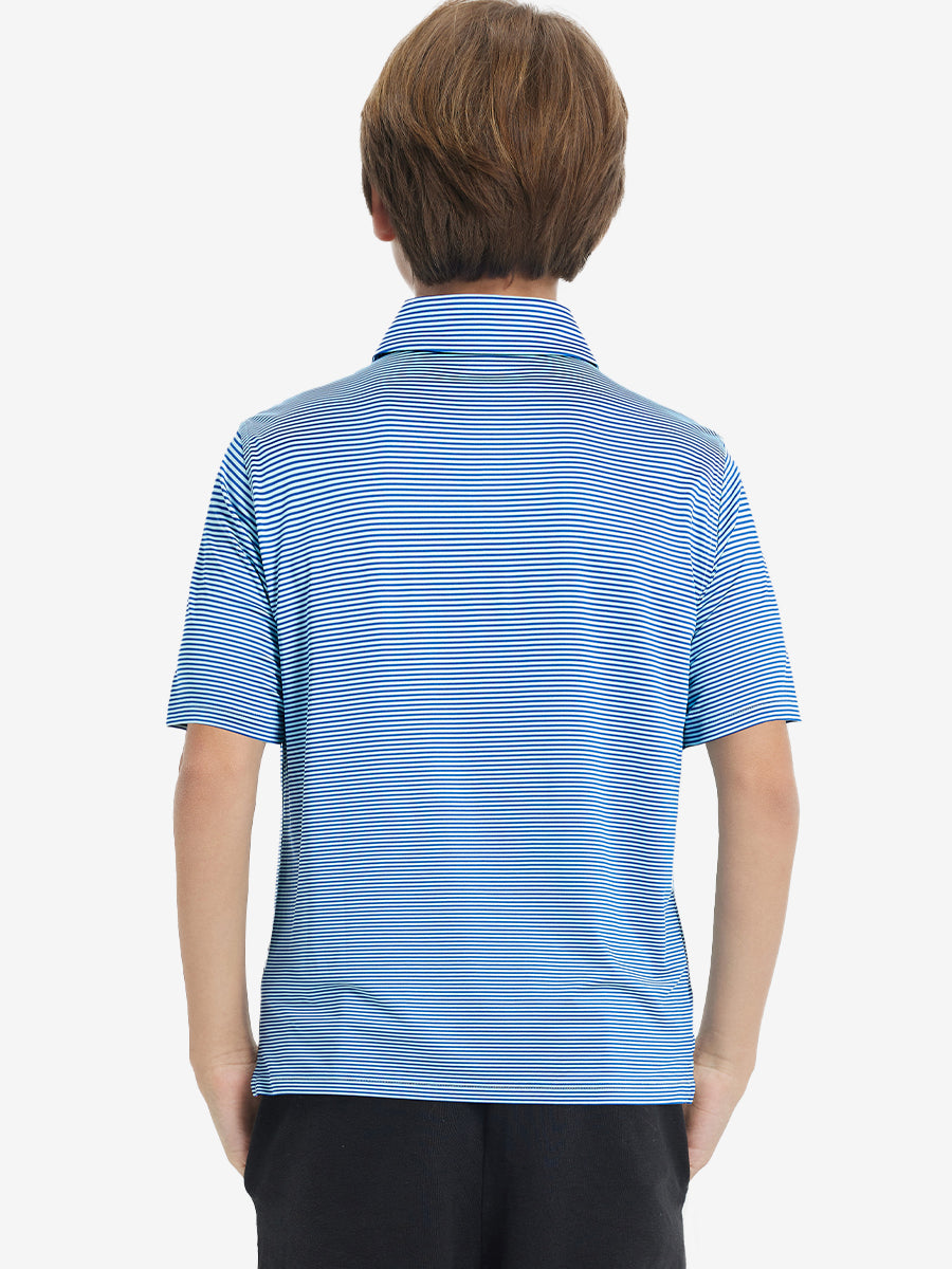 Performance Cooling Polo - Youth crafted from polyester spandex striped jersey. Lightweight, moisture-wicking, quick-drying, UPF 30+, soft hand-feel, 4-way stretch for comfort and breathability. Special construction ensures a no-curl collar and maintains shape.