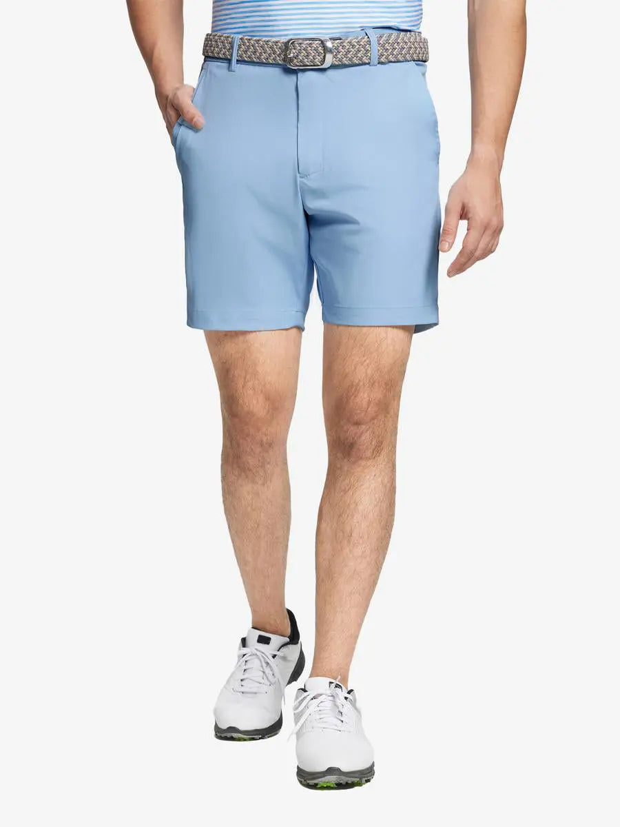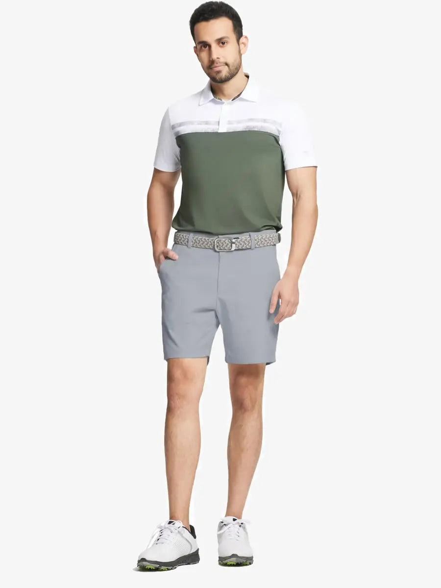 Elevate your game with our Water Resistant Golf Shorts for men. Crafted from premium polyester, these lightweight shorts offer moisture-wicking properties, easy care, and UPF30+ sun protection. Designed for comfort and flexibility, they keep you cool and allow a full range of motion. The secure closure with buttons and a zipper fly ensures a perfect fit, perfect for a flawless golfing experience.